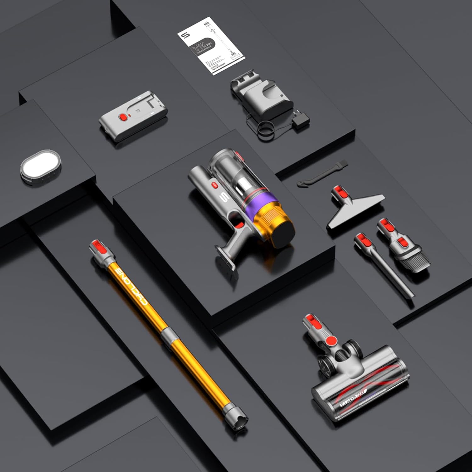 - Puissance d'aspiration 58 000 Pa et moteur 600 W : cet aspirateur sans fil est équipé d'un moteur de 600 W, qui fournit une puissante aspiration de 58 000 Pa. Détecte automatiquement les niveaux de poussière et ajuste la puissance d'aspiration en conséquence. Avec un niveau de bruit inférieur à 72 dB, il nettoie sans effort les tapis, les sols durs et les carreaux, capturant les particules fines, les poils d'animaux et la saleté tout en maintenant un environnement calme.